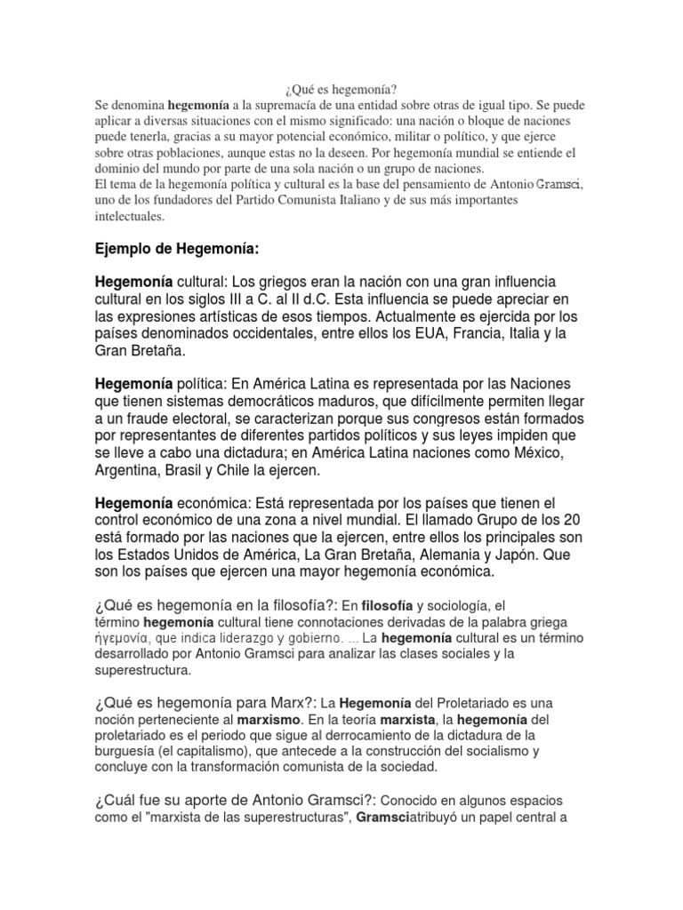 Recordemos, la palabra hegemonía es cuando un partido político o una persona permanece en el poder por mucho tiempo, sin que ningún otro partido tenga participación en el gobierno.